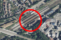 Erst viel später ersetzte ein neues traufenständiges und dreigliedriges Stationsgebäude in Seitenlage das alte Gebäude. Das Bauwerk ähnelte eher einem Industriebau. Es war ein zweistöckiges, rechteckiges und lang gestrecktes Gebäude. Im Erdgeschoss waren Segmentbogenfenster und Türen im Obergeschoss Rechteckfenster mit Schlagläden verbaut worden. Der Hausbahnsteig besaß eine Überdachung. Die beiden Mittelbahnsteige waren befestigt, verfügten jedoch über keine Überdachung. Weitere Streckeneröffnungen, Ausbauten oder Änderungen•Am 1. Oktober 1853 eröffneten die Königlich Württembergischen Staats-Eisenbahnen(K. W. St. E.) ihre 40,24 Kilometer lange Westbahn von Bietigheim (Württ) zur Bezirksgrenze Bretten.•Am 10. August 1859 eröffneten die Großherzoglich Badische Staatseisenbahnen (Bad. St. B.) ihre 12,43 Kilometer lange Strecke von Durlach nach Wilferdingen.•Am 1. Mai 1895 wurde die 7,55 Kilometer lange Güterumgehungsbahn Karlsruhe mit einem neuen Güterbahnhof in Betrieb genommen. Er lag zwischen dem alten Karlsruher Hauptbahnhof und dem alten Durlacher Bahnhof.